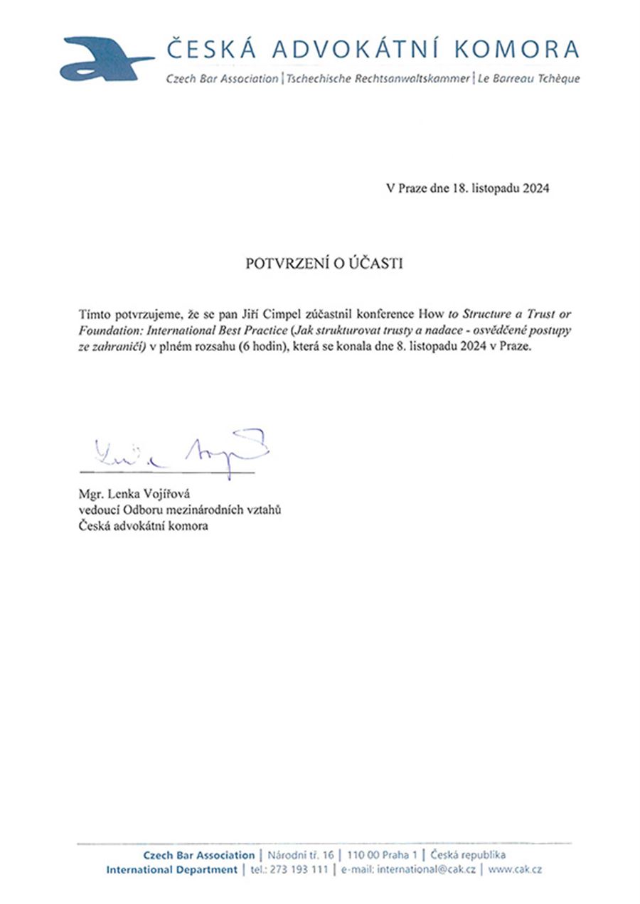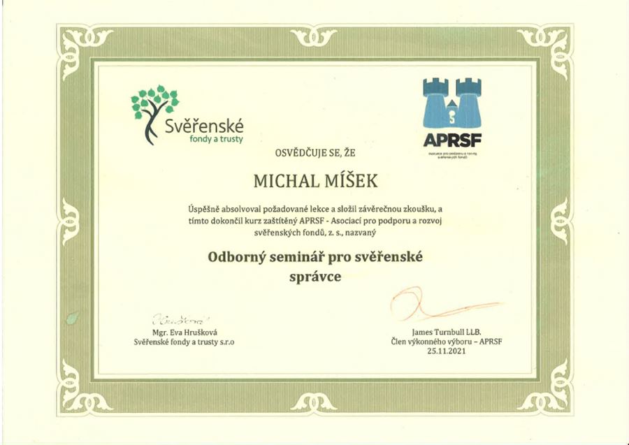 - Certifikační kurz svěřenského správce – Svěřenská správa, 2018